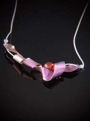 These one-of-a-kind artisan necklaces include a mix of cast sterling with hand-fabricated titanium and niobium. Some of the newer creations feature anodized metals in a variety of colors and patterns to add a touch of style.