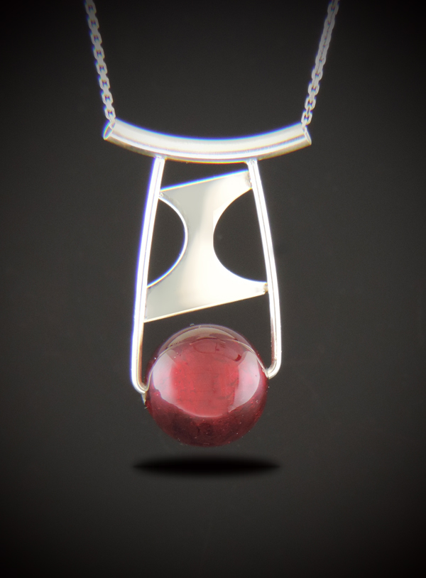 Unleash a bold statement with the Cherry Blast Pendant Necklace. This striking piece of wearable art features a rich, deep Red Venetian Glass bead held within a sleek, modern frame of recycled sterling silver shapes.